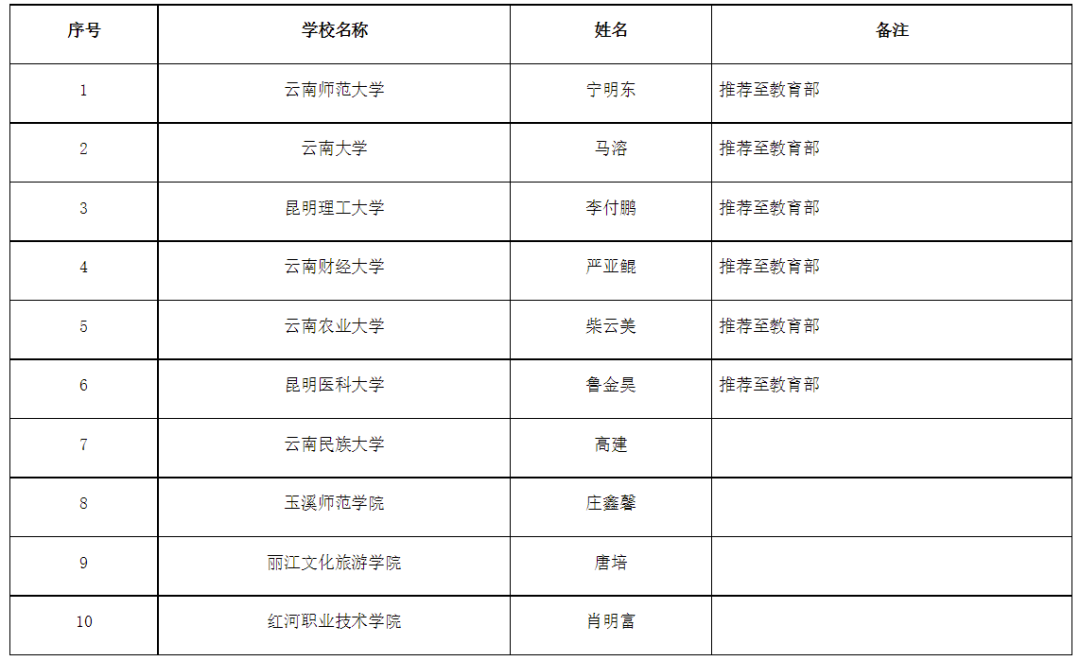 2026年度云南省“最美高校辅导员”推选名单(10人)