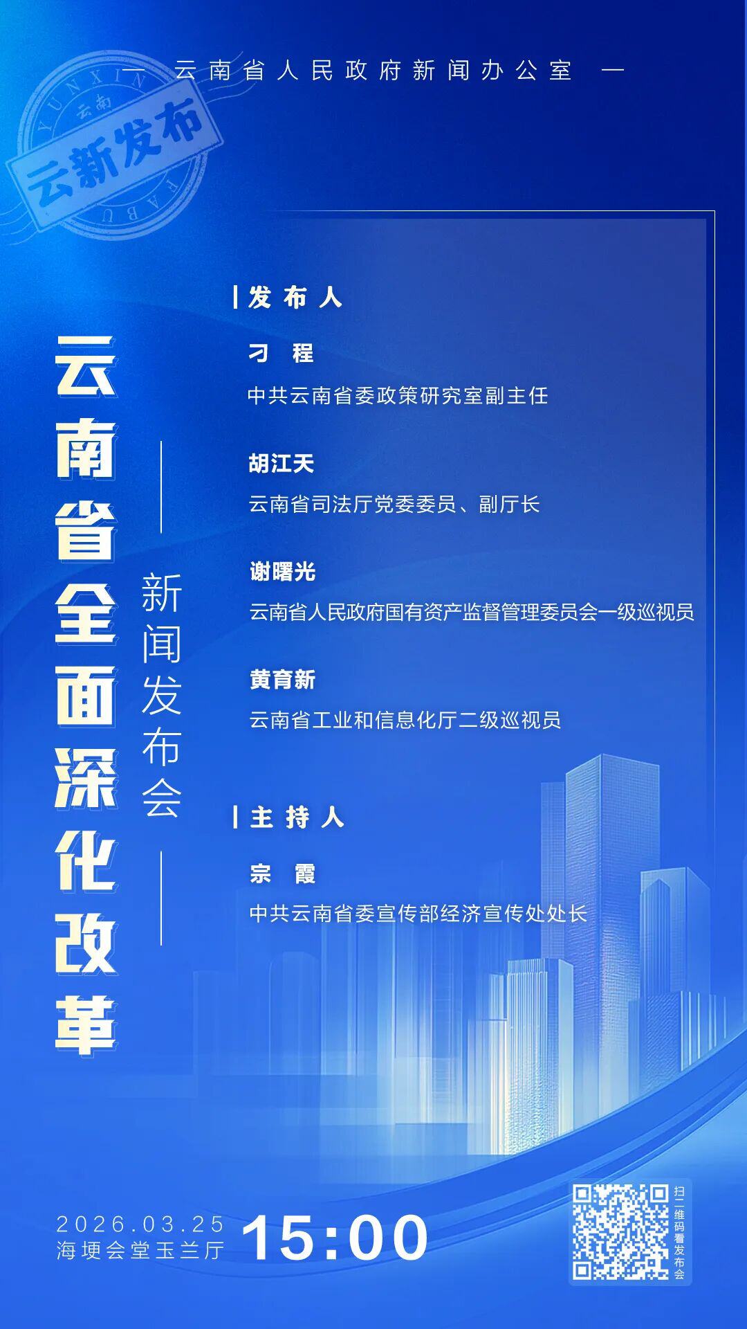 3月25日下午,云南省人民政府新闻办公室在云南海埂会堂,举行云南省全面深化改革新闻发布会,介绍相关情况并回答记者提问。