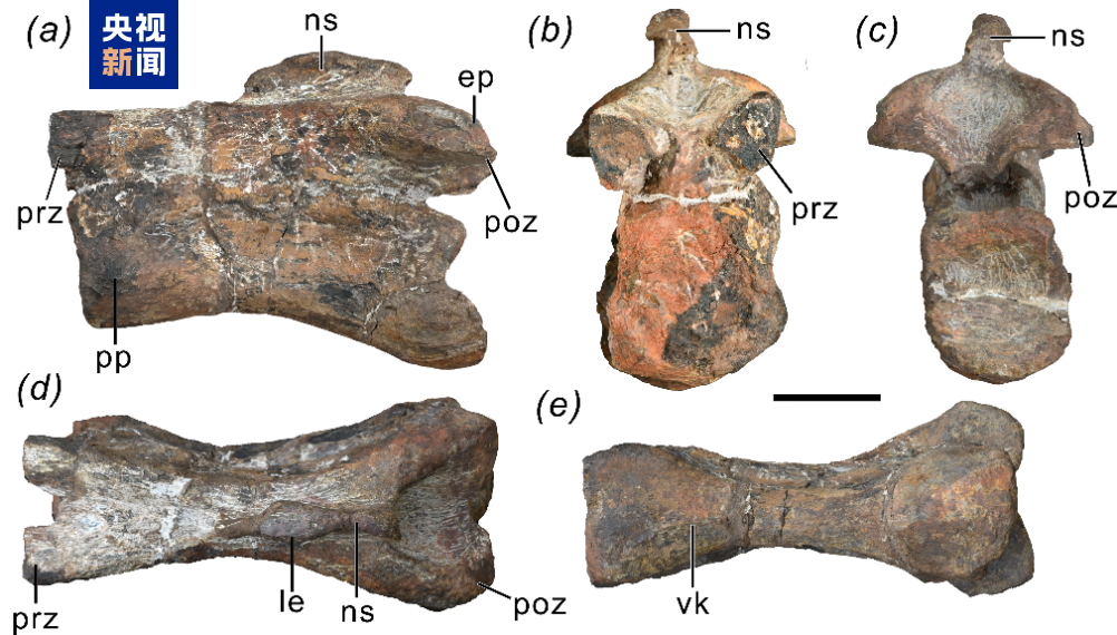 △祥云龙的中后部颈椎,比例尺为10cm