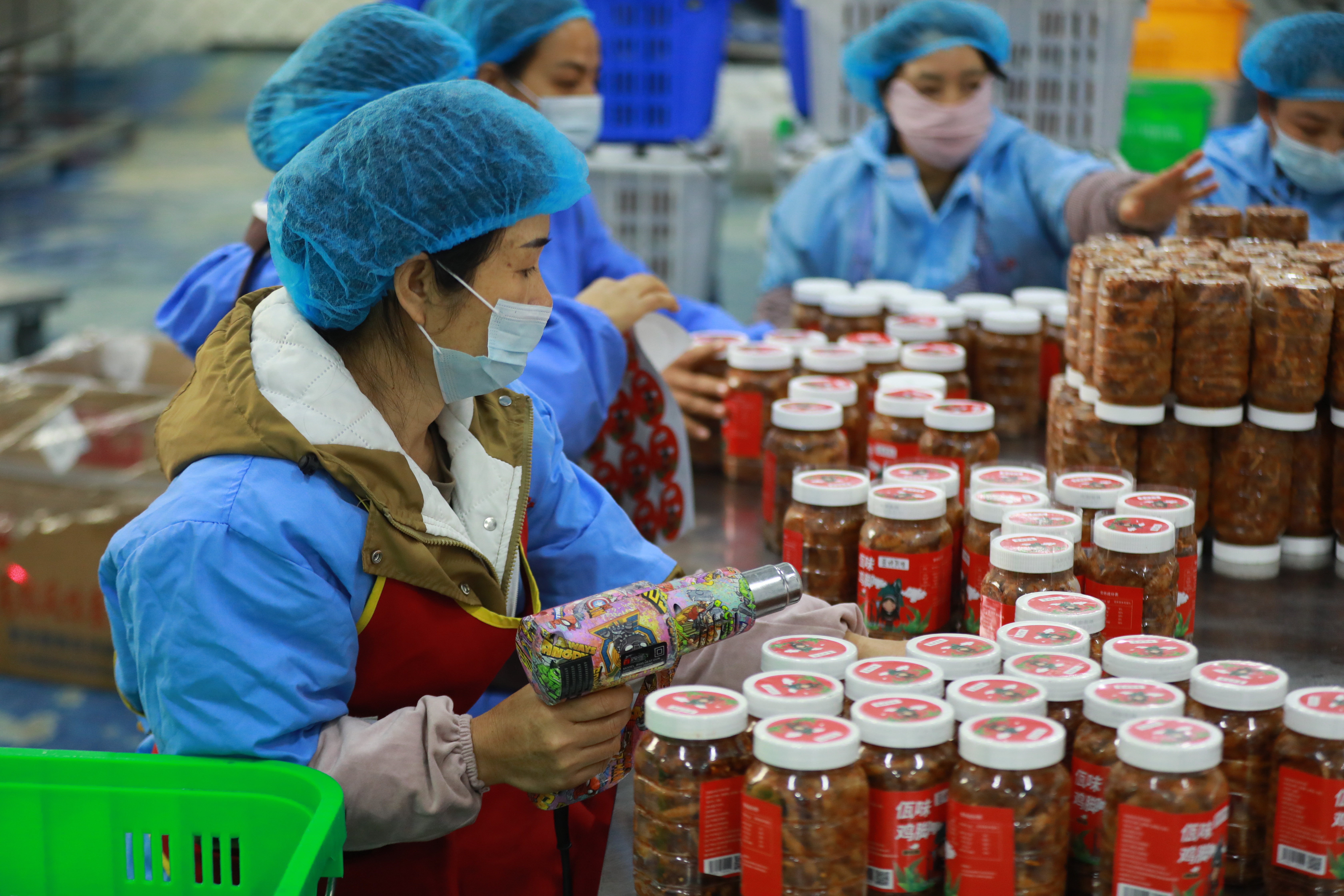 45天攻坚,换来的是当年投产、当年见效。2025年末,公司产值和营业收入双双突破2000万元,今年1月正式通过国家审批达规入库。目前,企业拥有肉制品、酱腌菜两大生产车间,主要生产鸡爪、牛皮、杂烩、苤菜根等民族特色食品,每月消耗鸡爪120吨、牛皮30吨、苤菜根40吨。