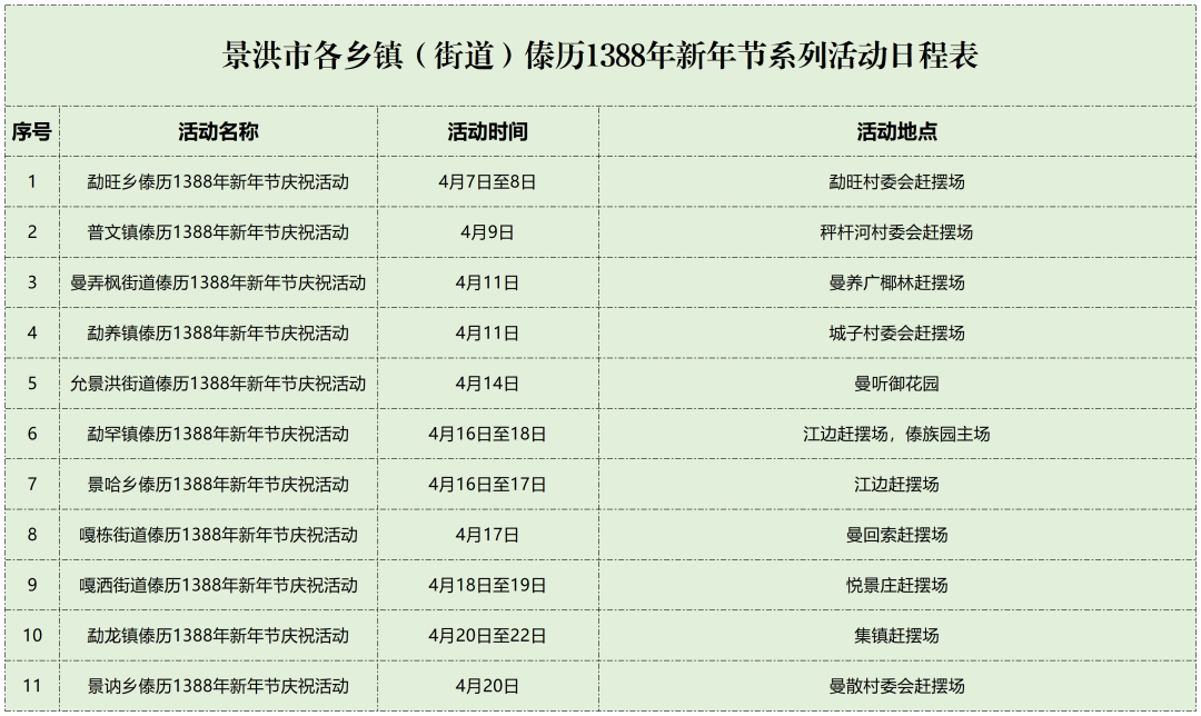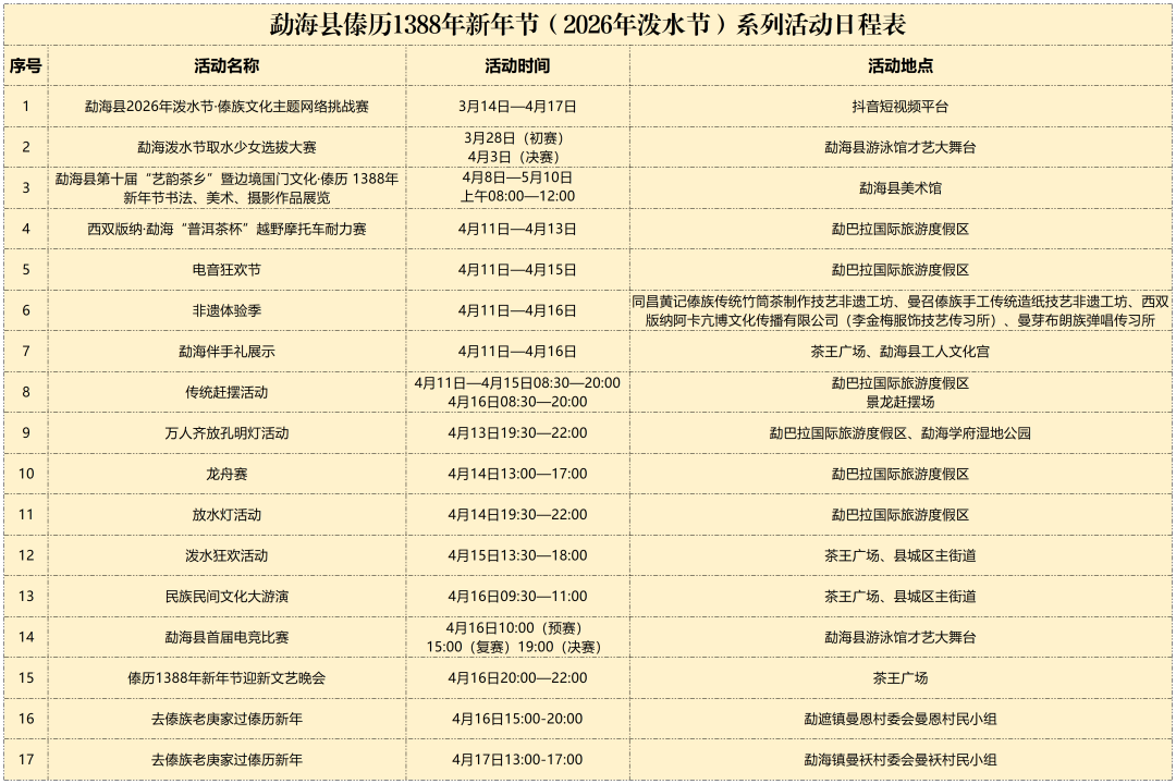 原标题:西双版纳州2026年泼水节活动日程出炉!