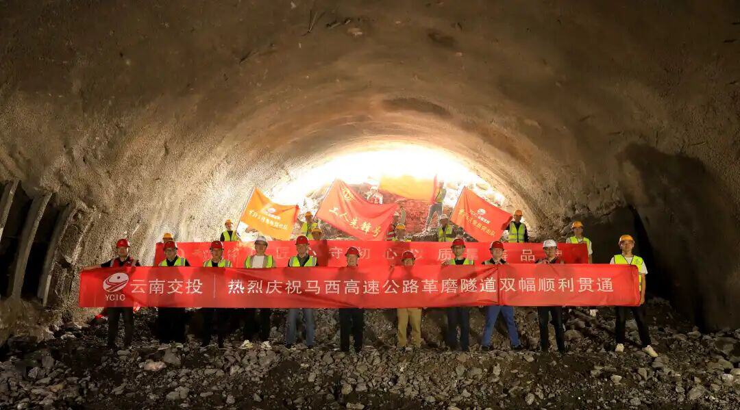 4月2日,马关至西畴高速公路革磨隧道双幅顺利贯通。革磨隧道为分离式隧道,位于文山壮族苗族自治州西畴县境内,右幅全长1335米,最大埋深约179米;左幅全长1360米,最大埋深约192米。
