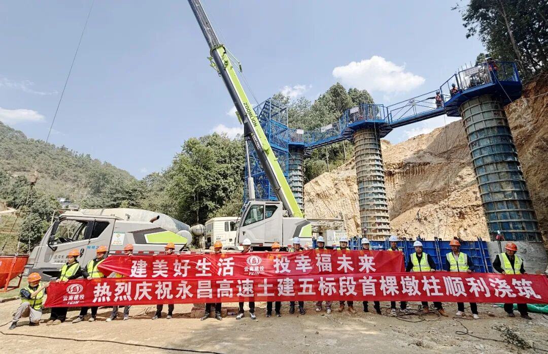 3月27日,永平至昌宁高速公路(昌宁段)项目漭水互通A匝道桥首棵墩柱顺利浇筑完成。漭水互通A匝道桥全长276米,本次浇筑的漭水互通首棵墩柱为A匝道桥3#墩,设计墩高26.19米。