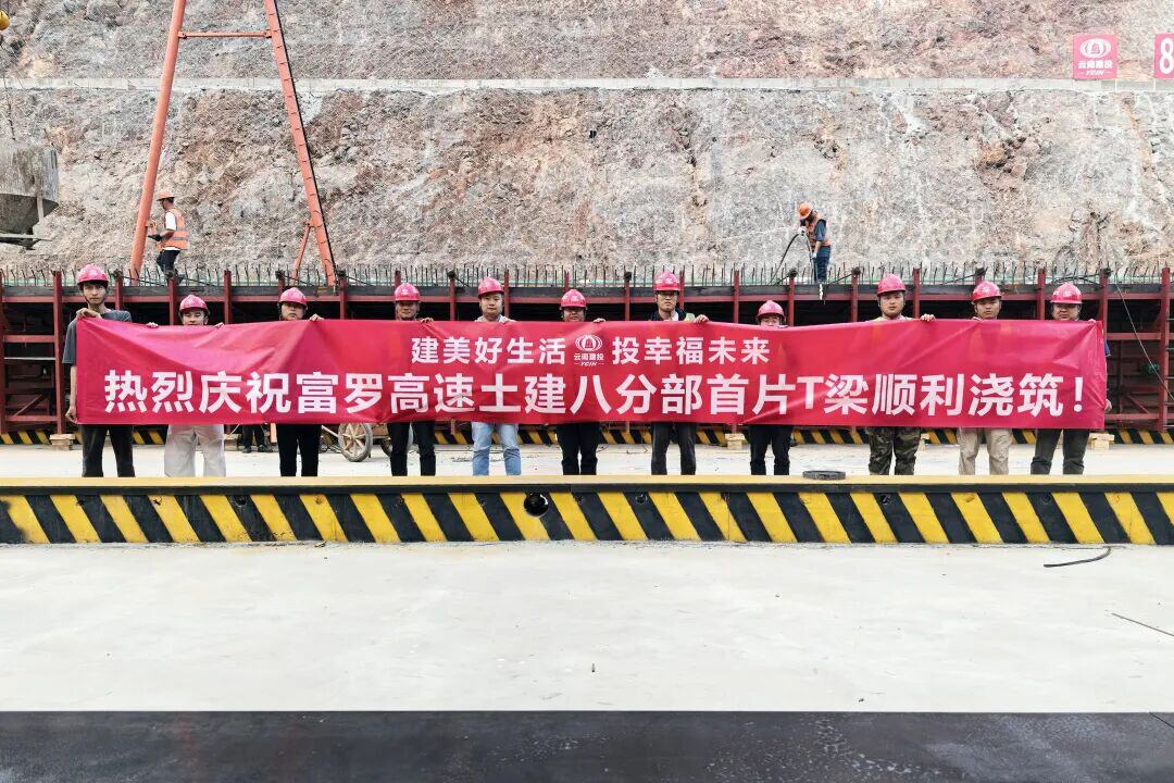 3月28日,富源至罗平高速公路土建八分部首片T梁完成浇筑,桥梁工程进入上部结构施工阶段。本次浇筑的T梁为戈贝村大桥右幅15-5#预制T梁,梁长29.43米、高2米、宽2.2米,设计重量约86.27吨,采用C50混凝土浇筑,方量34立方米。