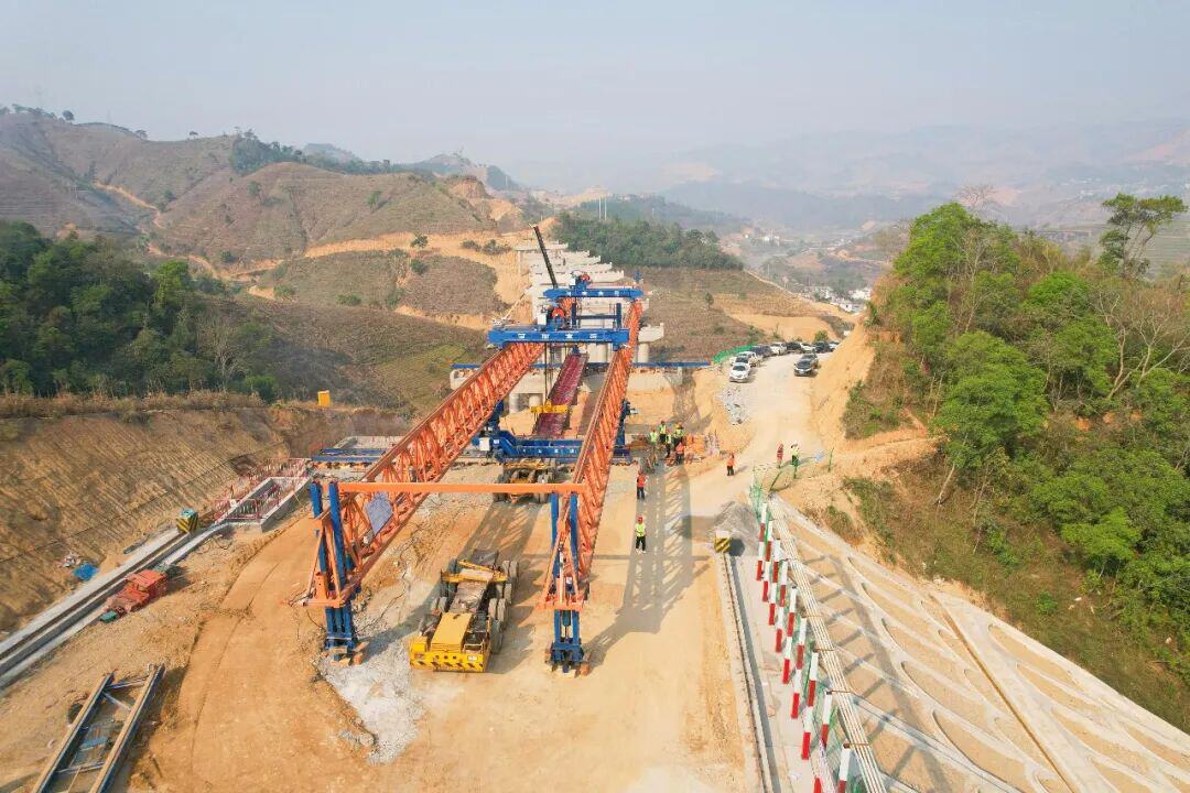 3月28日,南涧至云县高速公路项目土建十四工区小罗扎1#大桥首片T梁成功架设。十四工区主线左幅长7741米,右幅长7746米,连接线全长1176.684米,主线含路基工程3642.02米、小罗闸互通1处、桥梁全长5920米/13座(含互通)、预制T梁932片,钢混组合梁720米。