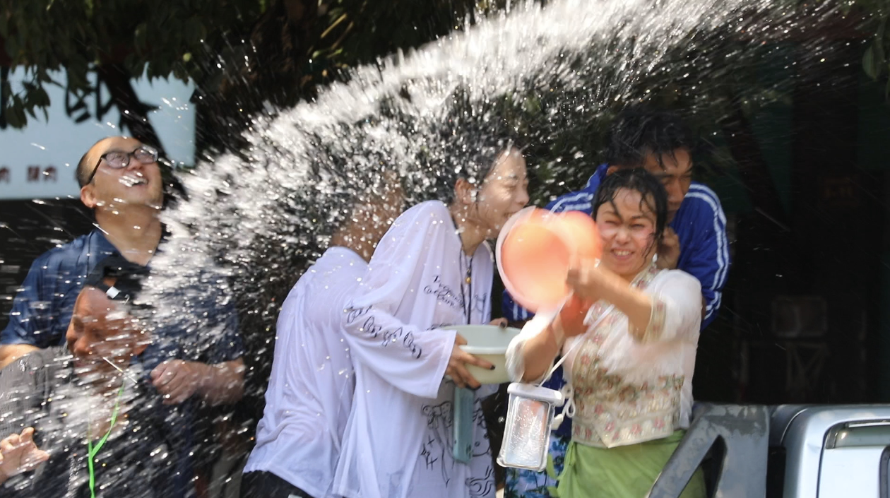 当地市民艾宇表示:“泼水节是我们最重要的节日,能和大家一起泼水,心里特别高兴。让我感觉我们都是一家人,毕竟水花越多,祝福越深嘛。”