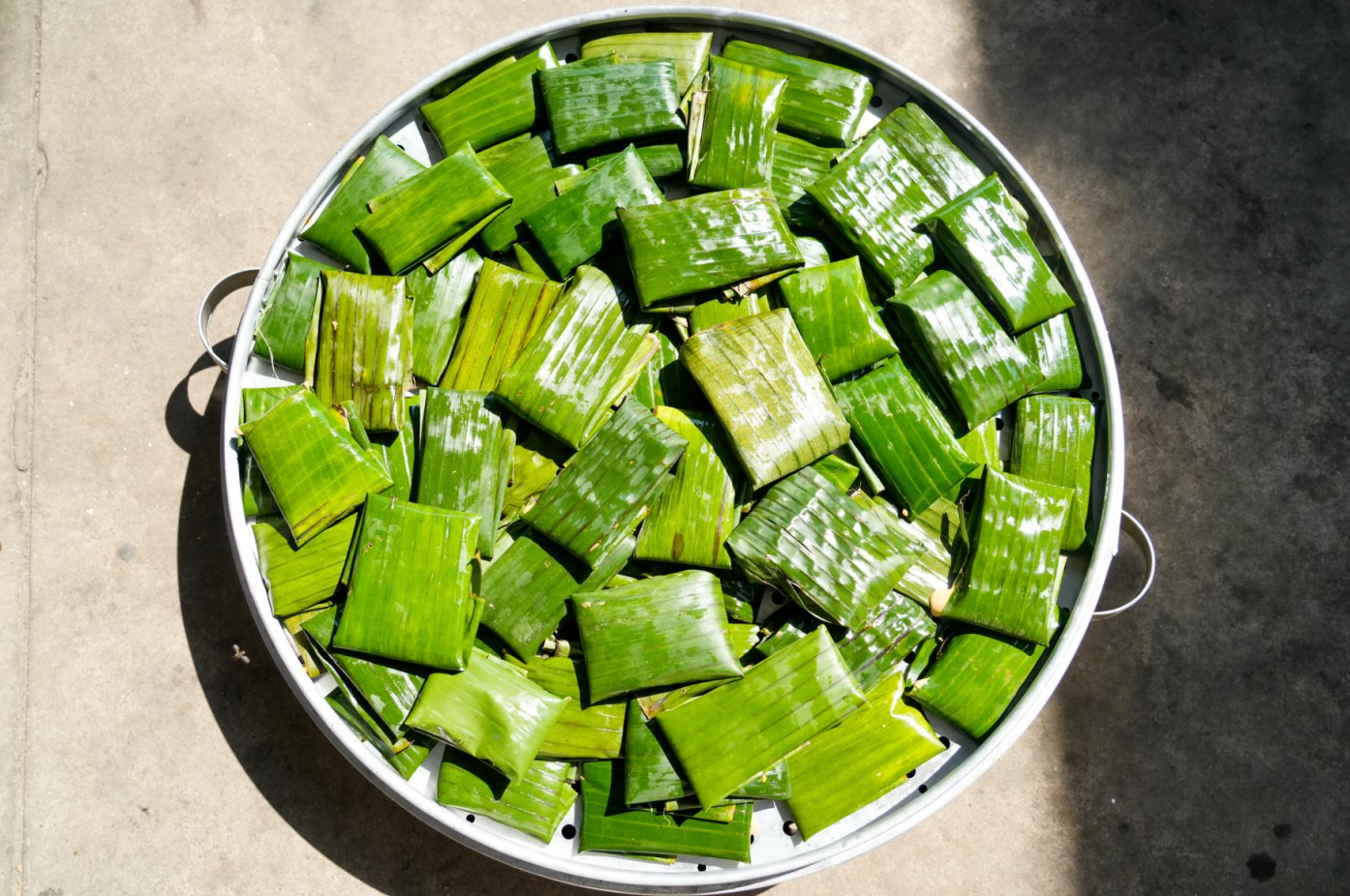 提前处理好的芭蕉叶要均匀抹油