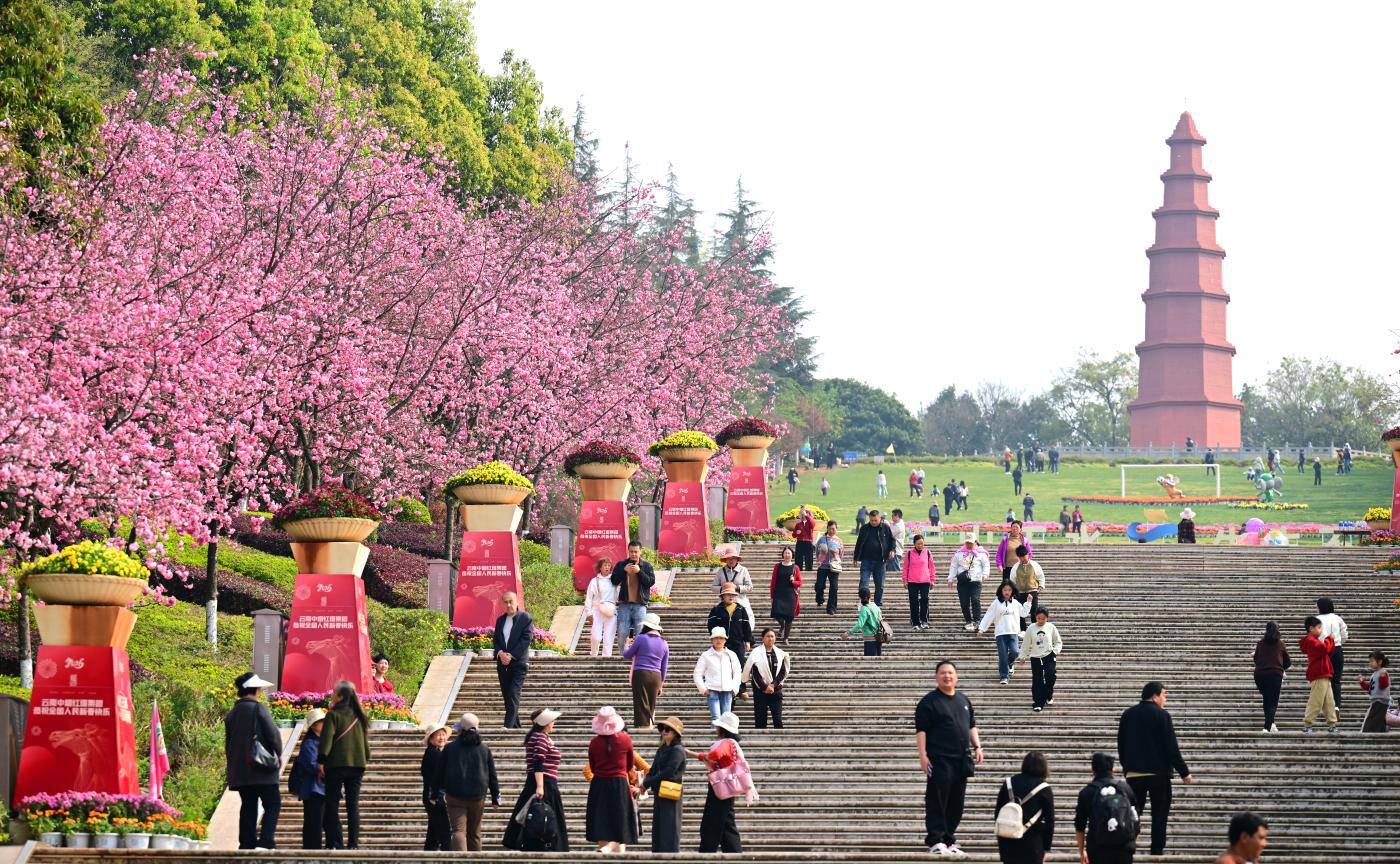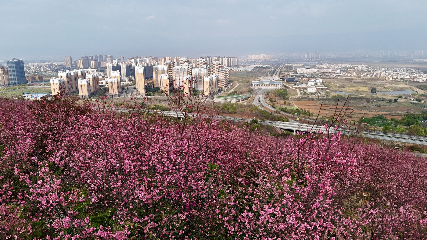 与此同时,玉溪市红塔区红塔山上的樱花竞相绽放,粉黛满枝。作为玉溪市中心城区的热门打卡地,红塔山樱花已成为市民踏春赏景、感受自然之美的重要选择,也为城市增添了一抹亮丽的色彩。