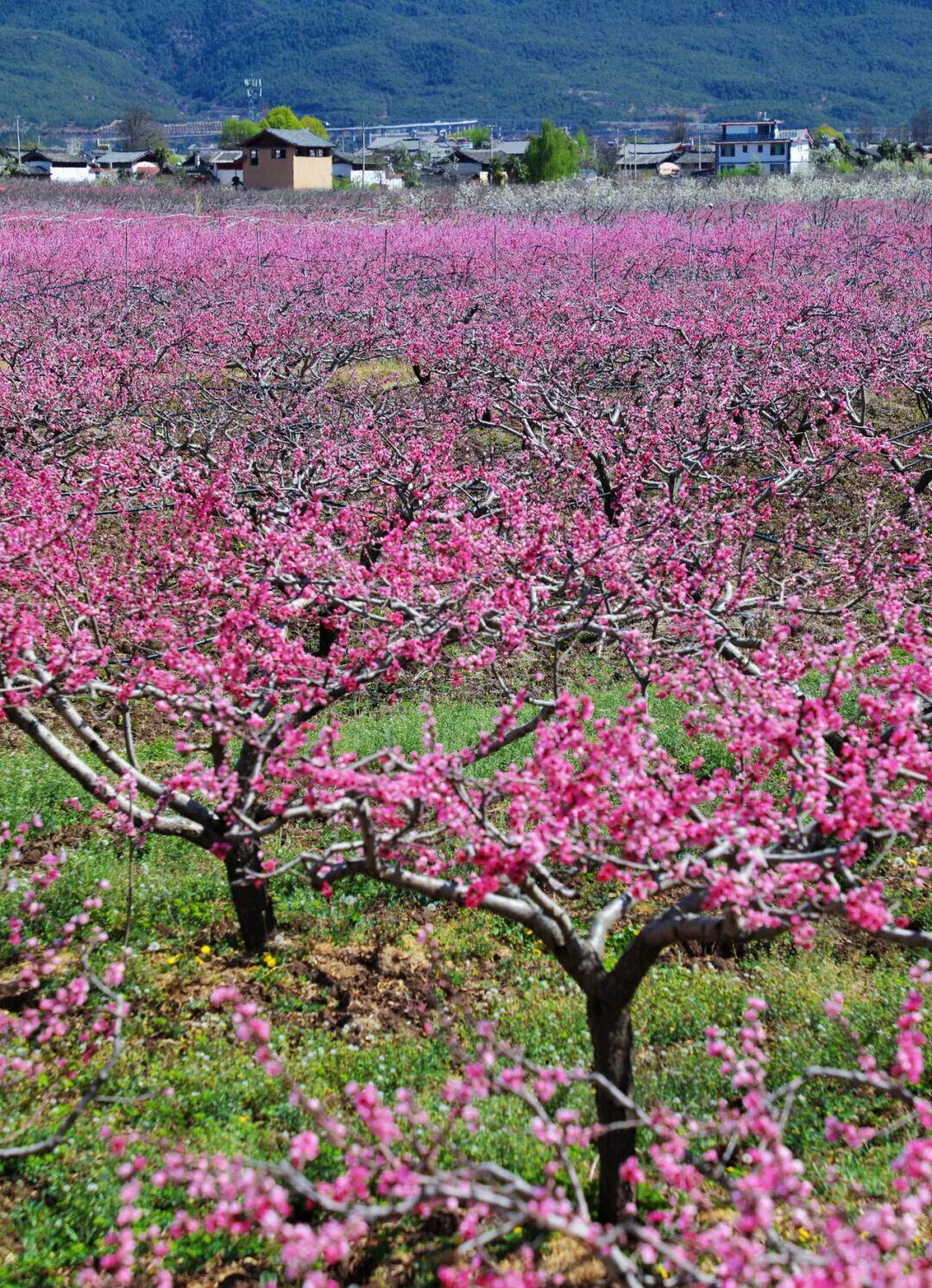 每逢阳春三月,位于玉龙县拉市镇的万亩桃花竞相绽放,只见成片的桃花风姿绰约、灿若云霞,繁如群星的花蕾随着春风欢快的摇曳着。要来看看吗?趁我们还分得清哪朵是桃,哪朵是雪山腮边的云。