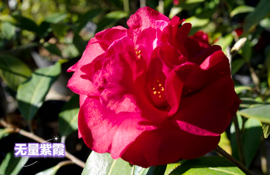 “无量紫霞”则以典雅的紫红色演绎东方美学,牡丹型花姿舒展大方,25枚花瓣波状起伏,黑红色网脉清晰可见,雄蕊3—5束夹生于瓣化花瓣间,独特的色彩搭配让它在茶花品种中独树一帜,花径达1011厘米,花期恰逢新春,成为节庆观赏的佳品。
