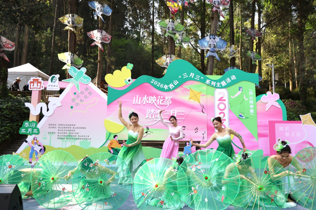 4月19日,“山水映花都・踏歌三月三”系列活动在西山景区龙门广场启幕,各族儿女身着盛装,赴一场春日之约。《嘿哈,西山》《三月三 游西山》的旋律悠扬,竹竿舞灵动、《弥渡山歌》婉转,国潮与民俗碰撞,乐队欢歌与打歌狂欢交织。