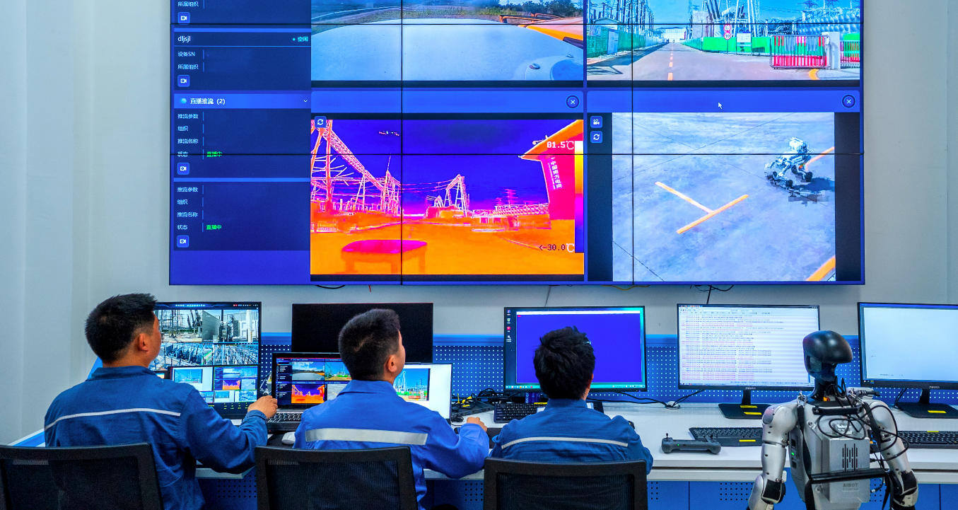 在南方电网云南西双版纳供电局主控室里,机器人值守在大屏前,一旦发现设备运行异常立马“派单”给机器狗,机器狗接到指令后立即出发奔赴现场,通过搭载的AI智能平台实时回传设备状态,值班人员可“身临其境”掌握前方情况。