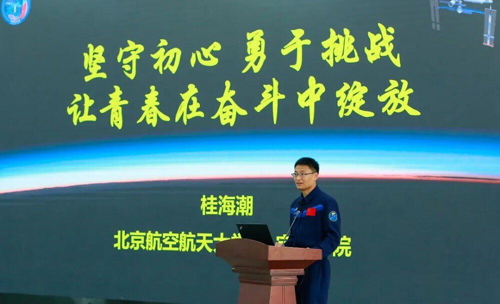 2023年5月30日,长征火箭点火升空,桂海潮搭乘神舟十六号奔赴天宫,为期五个月的太空之旅,他肩负着使命与担当。在轨期间,他带领团队完成68项科学实验,带回超过25公斤的实验样品,在空间生命科学、微重力物理等领域取得重要进展;作为大学教授,他不忘教书育人,趁着天地通话的间隙,通过家属转达对学生的课业指导,成为学生心中“上帝视角”的导师。