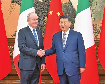 习近平指出,中国和爱尔兰都爱好和平、开放包容、自立进取,两国人民通过斗争赢得国家独立和民族解放,依靠几代人接续奋斗迈向现代化。2012年两国建立互惠战略伙伴关系以来,双边贸易额翻了两番,相互投资均衡发展,两国人民双向奔赴,助力各自国家发展。相互尊重、平等相待、互利共赢是中爱关系长期稳定发展的宝贵经验,双方要共同传承和弘扬。中方愿同爱尔兰加强战略沟通,深化政治互信,扩大务实合作,为两国人民谋福祉,为中欧关系添动力。