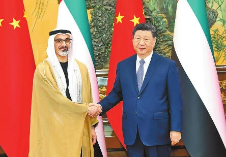 习近平指出,阿联酋是中国的全面战略伙伴,中方始终高度重视发展同阿联酋的关系。在双方共同努力下,中阿关系保持健康稳定发展,政治互信不断加深,务实合作稳步推进,人文交流丰富多彩。巩固和提升中阿关系是双方的坚定共识,符合两国人民期待。中方愿同阿方携手同行,打造更加稳固坚韧、富有活力的中阿全面战略伙伴关系。双方要继续在涉及彼此核心利益和重大关切问题上相互支持,保持高层交往,筑牢战略互信。加强发展战略对接,在能源、投资、贸易、科技等领域深挖潜力,深化互利合作。推动教育、民航、旅游等合作取得更大进展,密切人文交流,夯实民意基础。在联合国、金砖国家等多边平台增进协调合作,以中阿关系的稳定性应对国际和地区形势的不确定性,共同推动构建人类命运共同体。