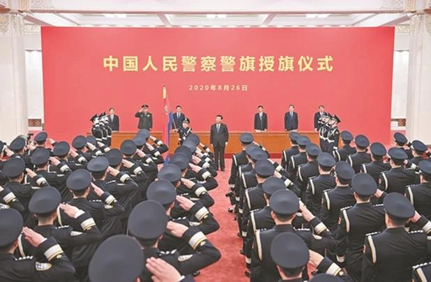 8月26日,中共中央总书记、国家主席、中央军委主席习近平向中国人民警察队伍授旗并致训词。新华社记者 张领 摄