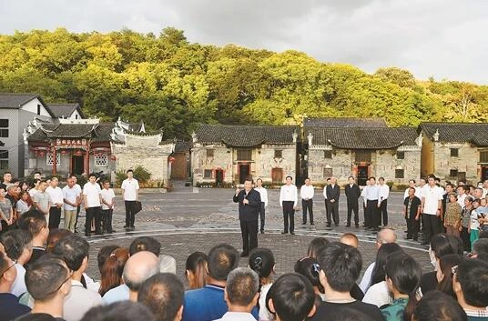 9月16日下午,习近平总书记在郴州市汝城县文明瑶族乡沙洲瑶族村,同村民和游客们亲切交流。新华社记者 岳月伟 摄