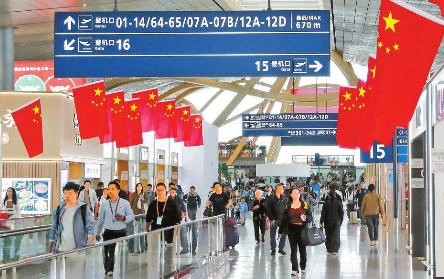 昆明长水国际机场返程客流秩序井然。 记者 杨峥 摄