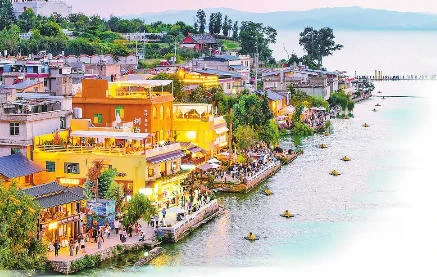 而在滇池之滨的海晏村,又是另一番景象。凭借落日景观,这里人流如织,餐饮店与咖啡馆灯火通明、座无虚席,“落日经济”效益显著。