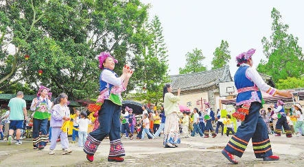 建水县团山景区烟盒舞表演。 通讯员 高铭睎 摄