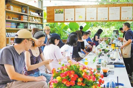 游客在天玉庄咖啡园品尝咖啡。 通讯员 罗嘉 摄