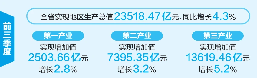 前三季度,全省农林牧渔业总产值4276.19亿元、同比增长2.9%,增速较上半年提高0.1个百分点。
