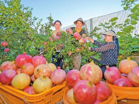 金秋时节,宾川县3万余亩软籽石榴迎来丰收。红彤彤的果实挂满枝头,果农们抢抓市场窗口采摘、分拣、装箱,田间地头一派繁忙景象。