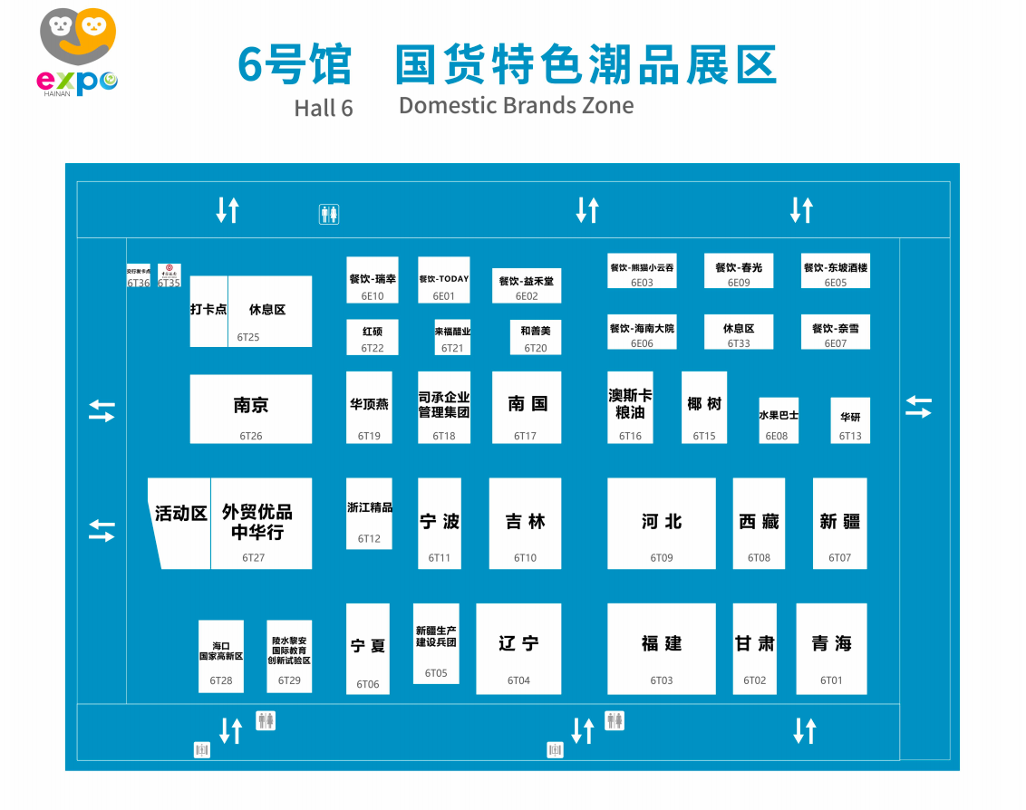 6 、7 、8 号馆为国货特色潮品展区,主要为各省区市展团和优质国潮消费品品牌,集中呈现了我国消费市场的强劲动能与发展前景。