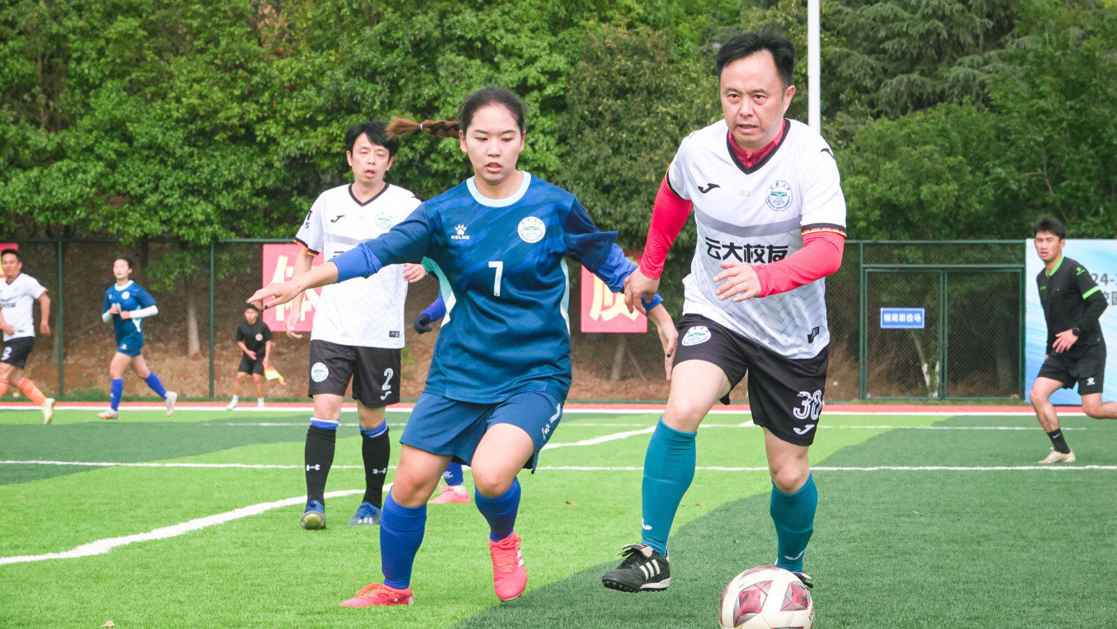 此次赛事由云南大学校友总会主办,校友体育俱乐部承办,云南大学体育学院、云南大学足球协会协办,众多校友齐聚绿茵场,共同为观众带来了一场精彩的足球盛宴。