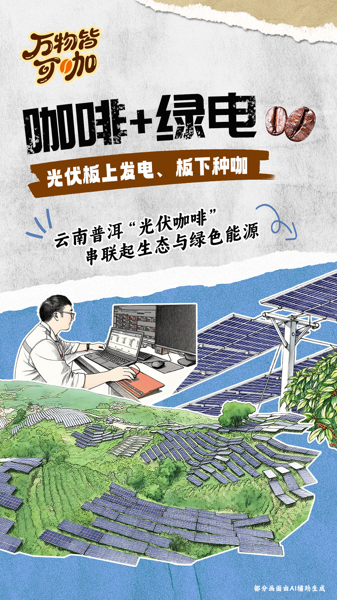 云南是咖啡大省,2024年,云南省咖啡种植面积、产量均占全国的98%以上。在云南,“万物皆可咖”,咖啡不仅仅是一种饮品,更是一种生活方式,承载着丰富的文化内涵。从街头巷尾的传统冲泡,到餐桌上不断涌现的创新吃法;从山间咖啡庄园里的生态种植,到城市咖啡馆的社交新场景,云南正以咖啡为纽带,将自然馈赠与人文创意编织成属于自己的“咖啡文化图谱”。今日,一起来感受,在云南“万物皆可咖”。