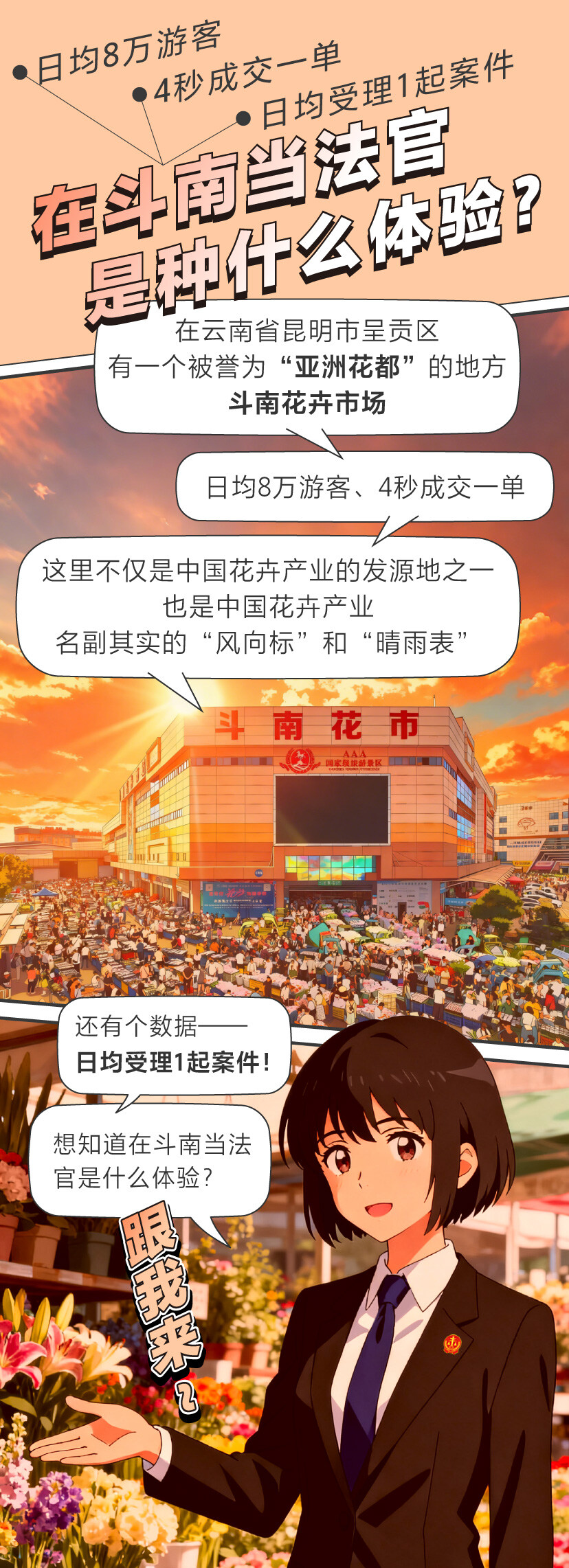 原标题:司法护航云花盛放·昆明站丨日均8万游客、4秒成交一单、日均受理1起案件 在斗南当法官是种什么体验?
