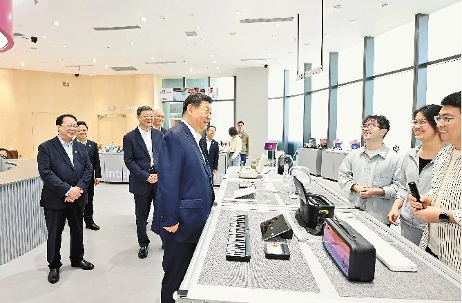 29日上午,习近平在中共中央政治局委员、上海市委书记陈吉宁和市长龚正陪同下,来到位于徐汇区的上海“模速空间”大模型创新生态社区调研。