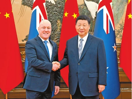6月20日上午,国家主席习近平在北京人民大会堂会见来华进行正式访问的新西兰总理拉克森。新华社记者 申宏 摄