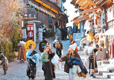 深冬时节,香格里拉独克宗古城游人如织。凭借深厚的历史文化底蕴和独特的自然风光,当地不断丰富文旅产品,擦亮“世界的香格里拉”招牌,吸引游客纷至沓来,沉浸式体验“有一种叫云南的生活”。(记者 黄兴能 摄)