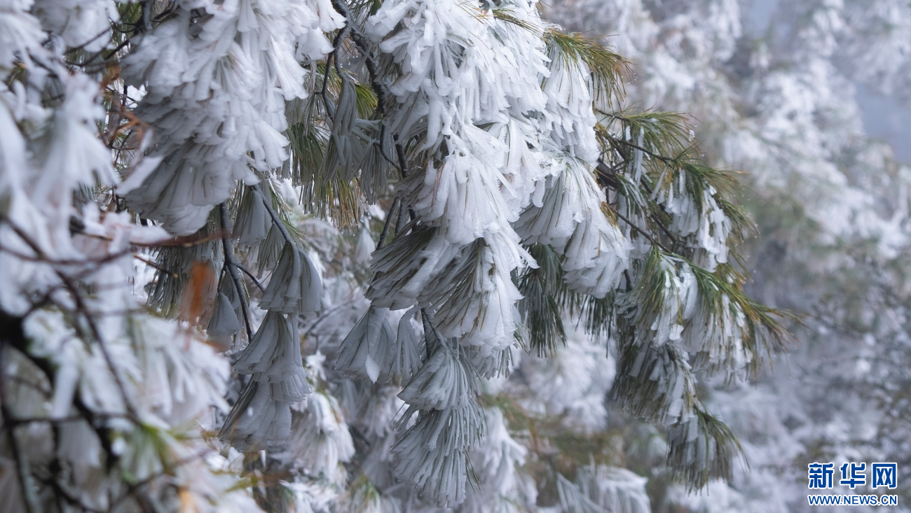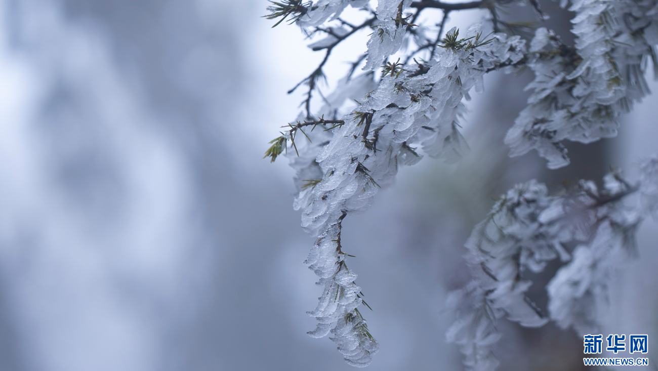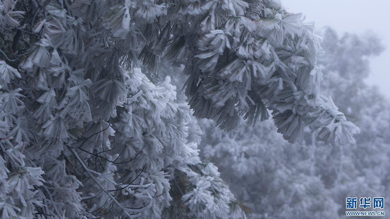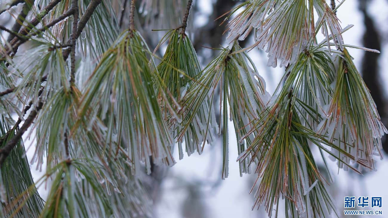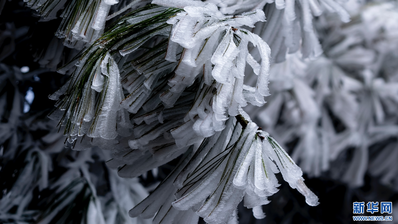 松柏披上冰晶外衣(1月7日摄)。新华网发(谢罗凯 摄)
