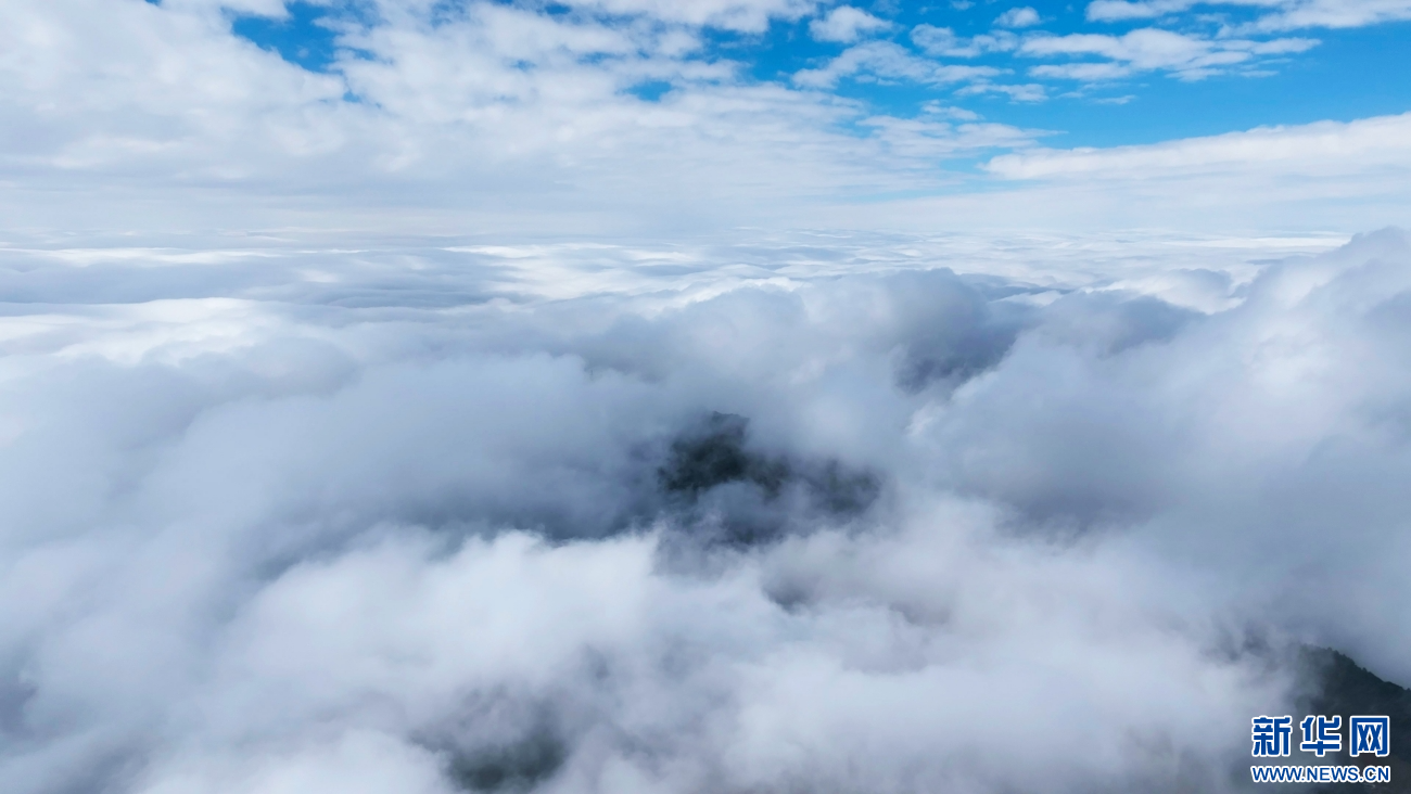航拍梁王山上空云海翻涌(1月7日摄)。新华网发(谢罗凯 摄)