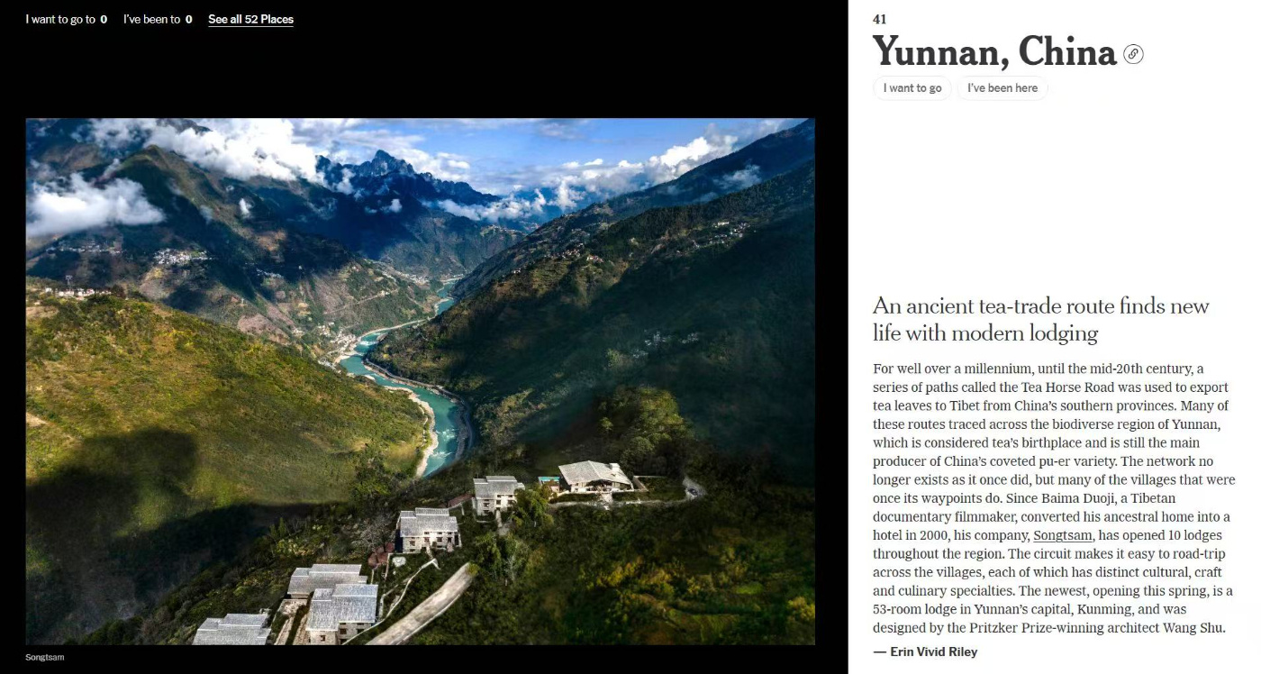 就在本月,《纽约时报》2026年“52个最值得去的地方”榜单出炉,云南作为中国唯一入选地,凭“千年茶马古道因现代旅行方式焕发新生”惊艳世界。这里不只是风景,更是一种可沉浸、可生活的“诗与远方”。