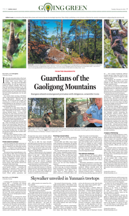 原标题:《中国日报》聚焦云南高黎贡山天行长臂猿保护工作