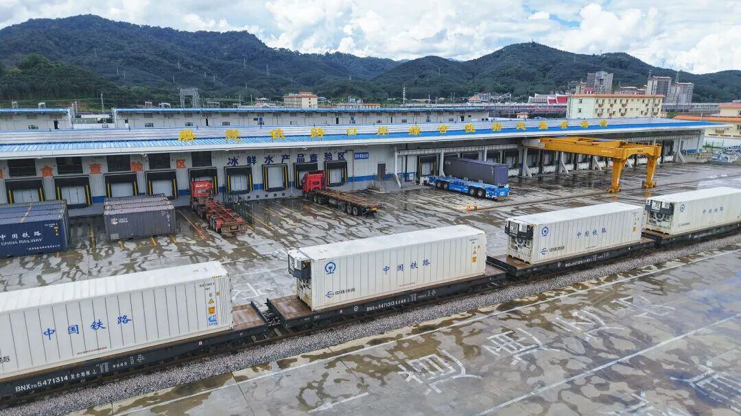 磨丁站推行铁路、海关联合办公、提前报关,依托海关D53标签系统,实现集装箱全程追溯;在国境线另一侧,磨憨站大力推进智慧口岸建设,创新推出“数字化平台+自动化装备+智能化防控”作业模式,让跨境物流更畅通。