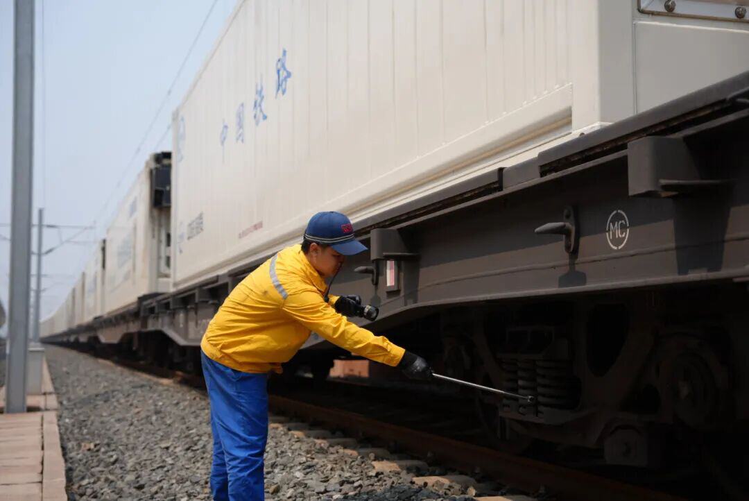 中老两国职工紧密配合,为跨境货物列车高效通关保驾护航。