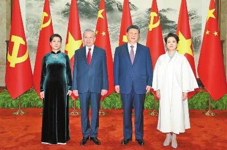 双方要同心协力,携手同行现代化道路。要加快发展战略对接,优先推进基础设施互联互通。要加强人工智能、半导体、物联网等新兴领域合作。中方欢迎更多越南优质产品进入中国市场。双方要继续加强旅游、文化、媒体、教育、卫生、体育等友好交流合作,促进两国人民相知相亲。我愿同你一道宣布启动2026—2027年“中越旅游合作年”。